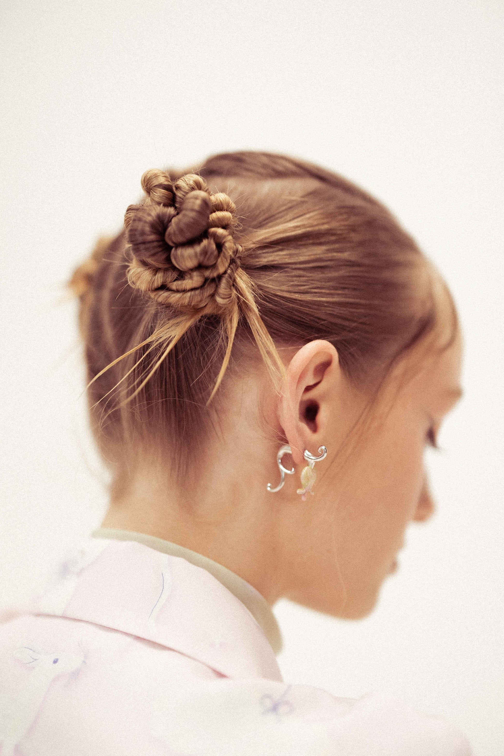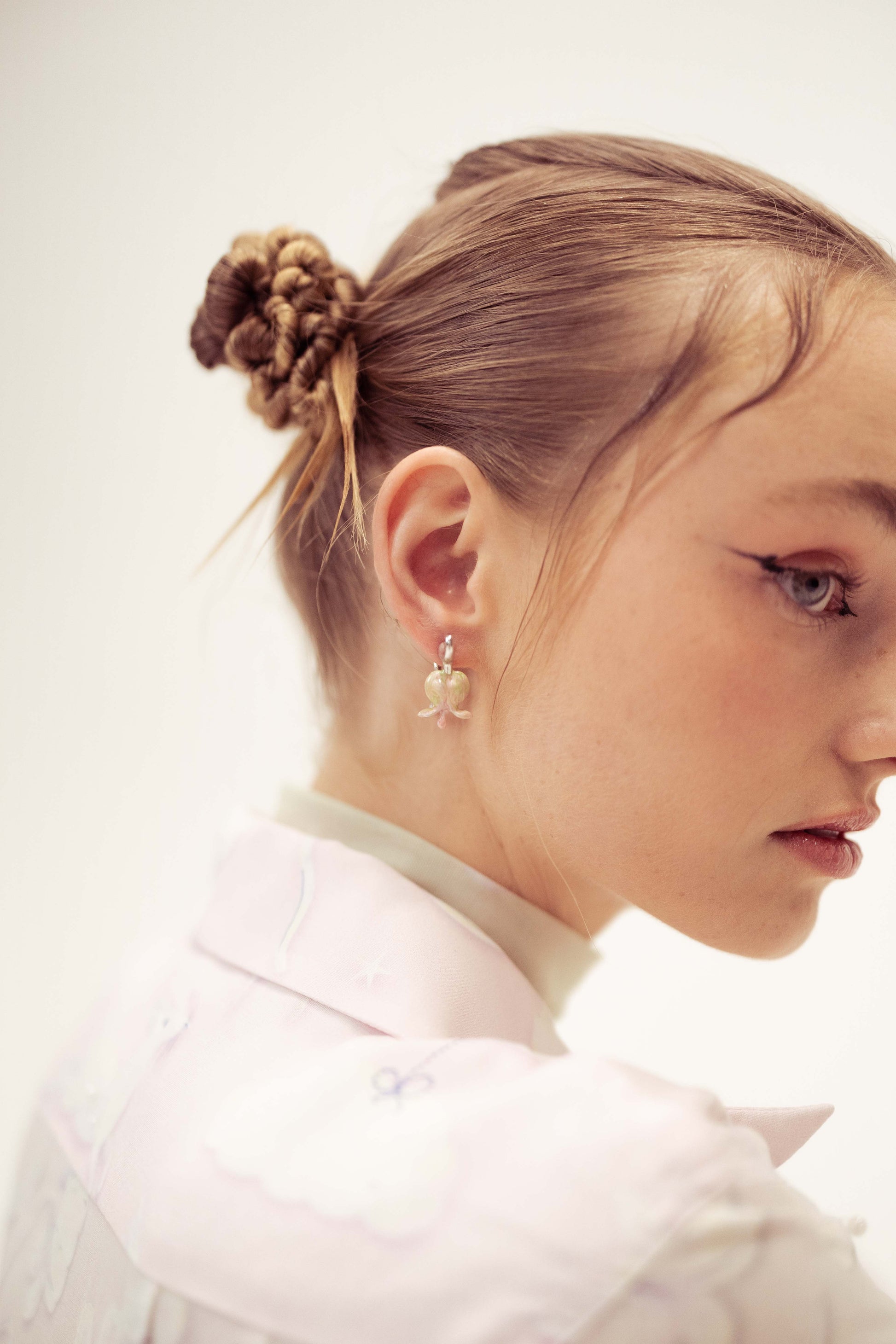 This unique two parts earring has a bleeding heart flower at the front and the stem at the back. A beautiful statement piece with soft ombre colour.