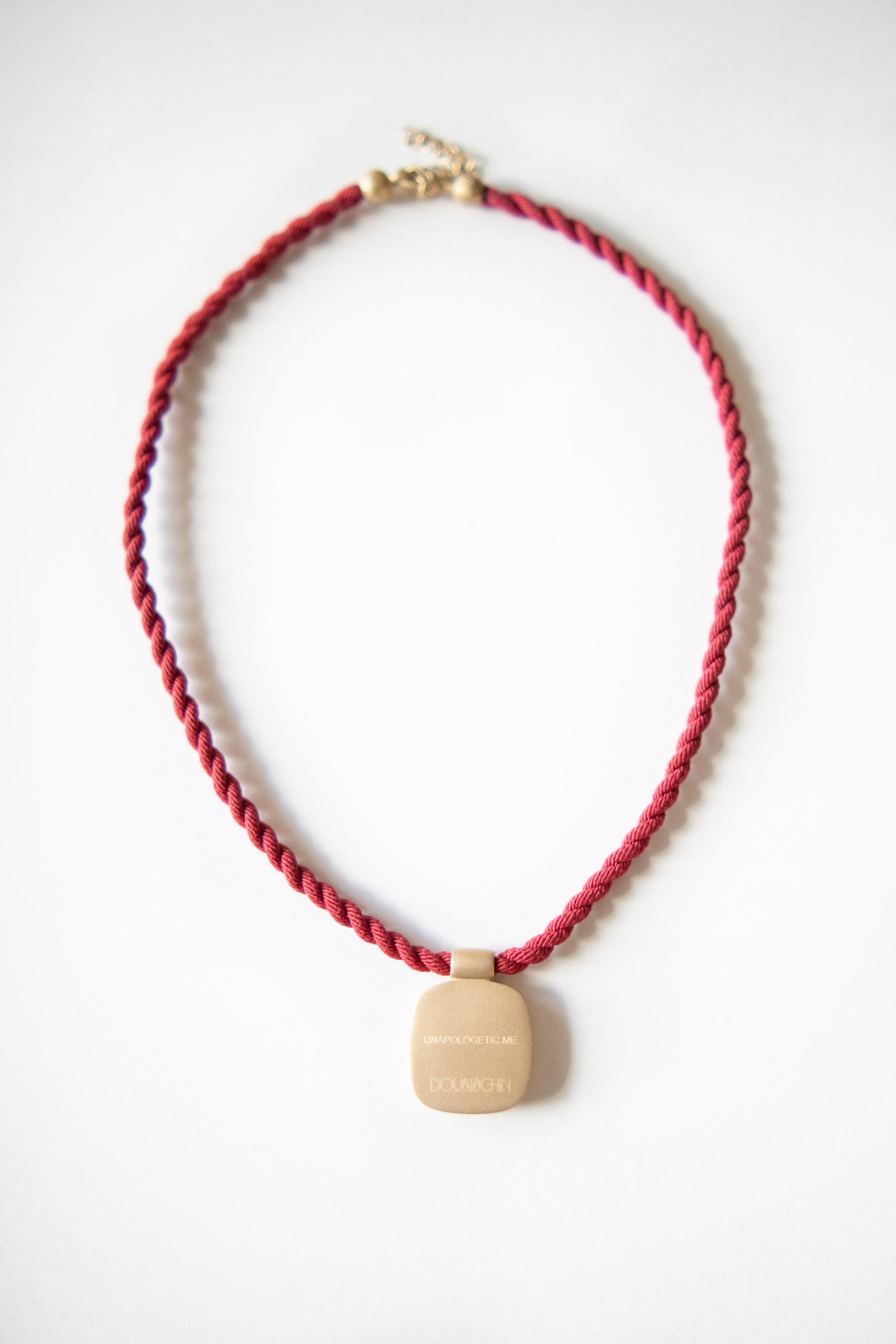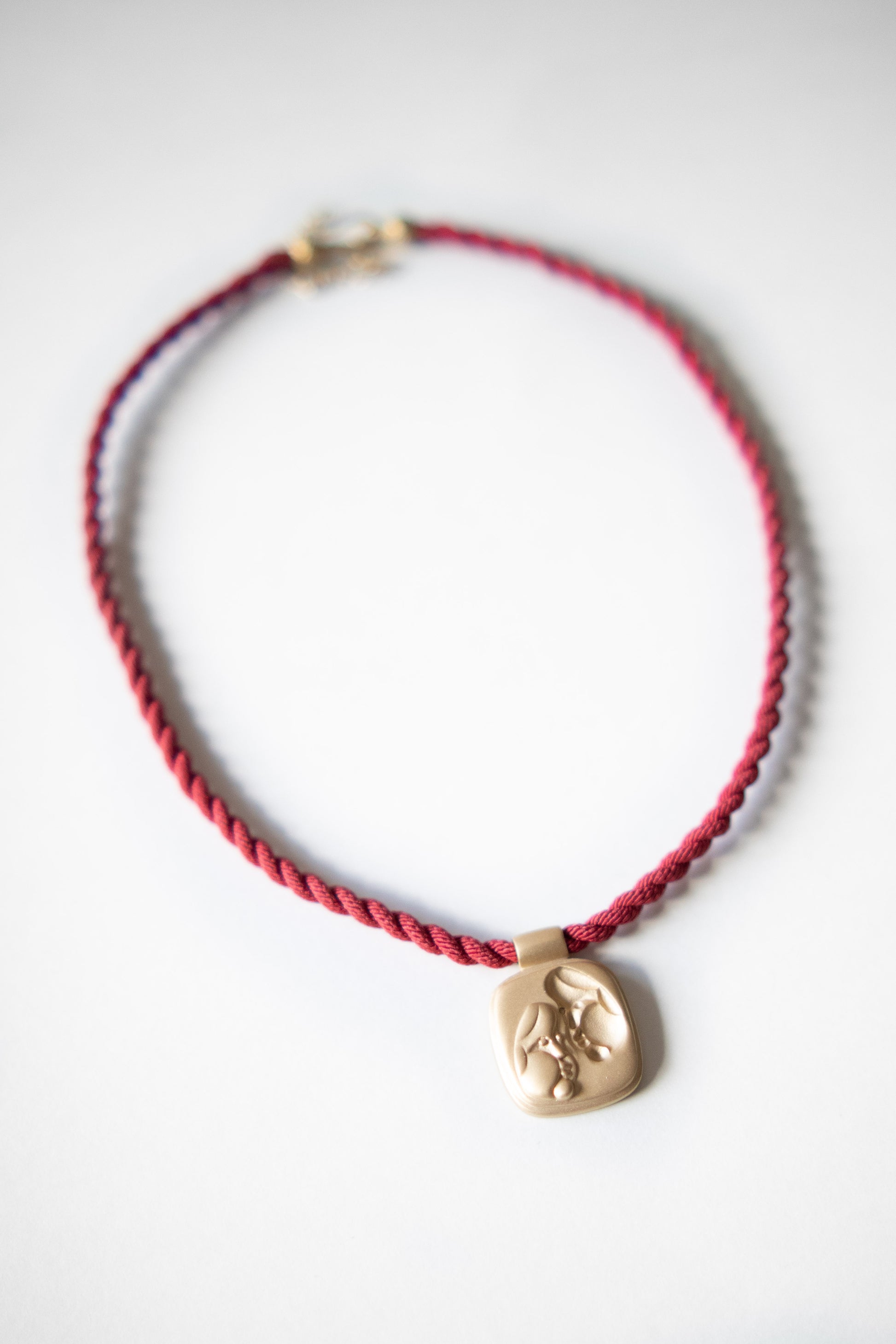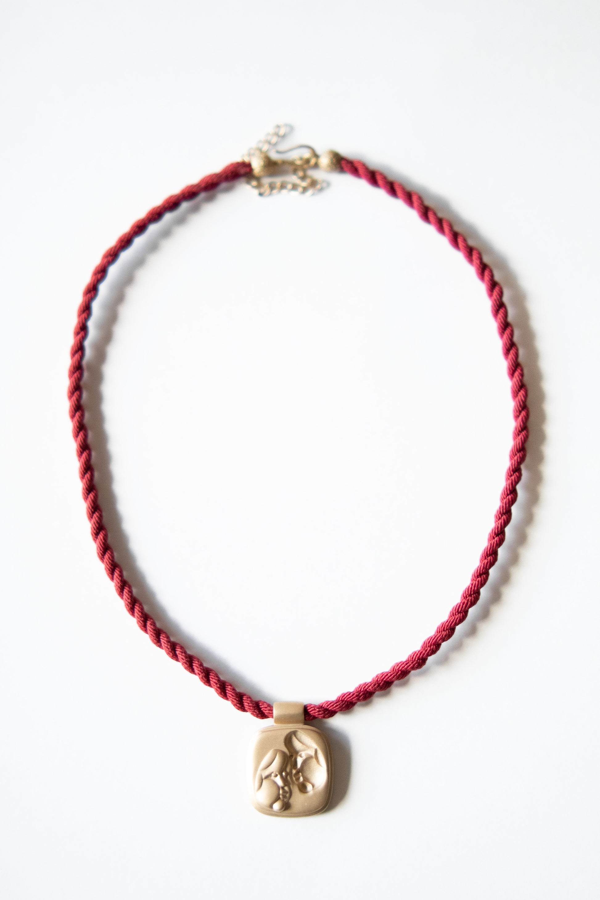 14K Gold plated emblem with twisted rope necklace with engraving at the back.